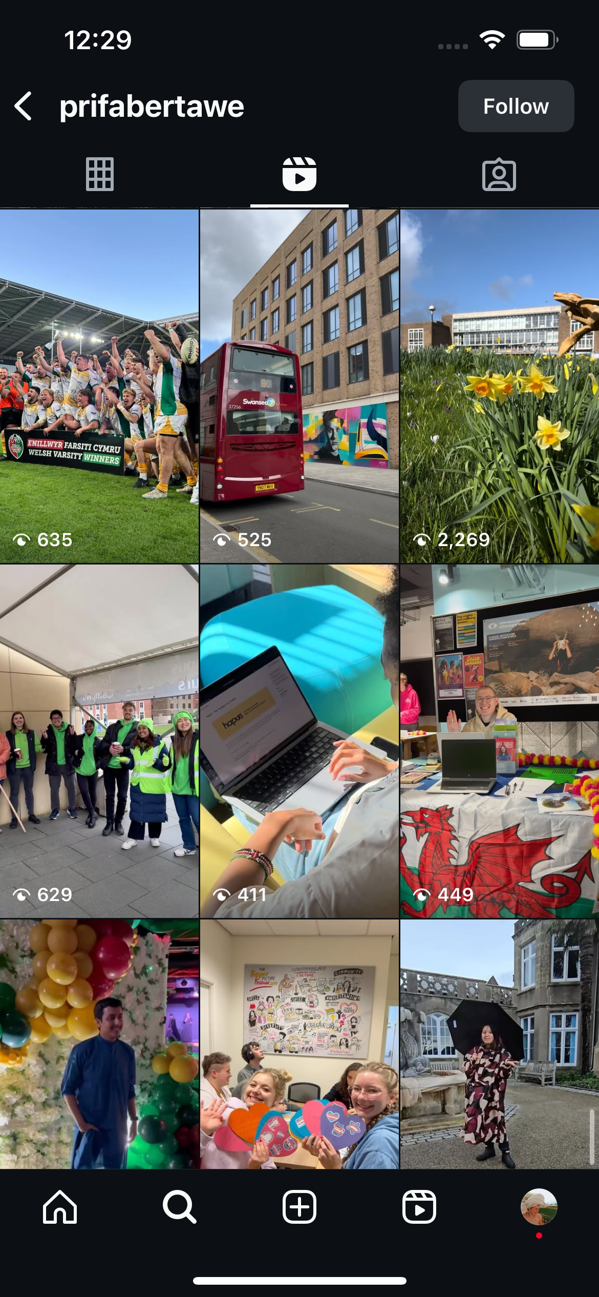 I worked on both the English (left) and Welsh channels (right): Instagram, TikTok, Facebook and Youtube.